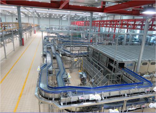 (2)主要設備:卸垛機、卸箱機、洗瓶機、灌裝機、殺菌機、裝箱機、碼垛機、瓶箱輸送系統、貼標機、清洗系統等